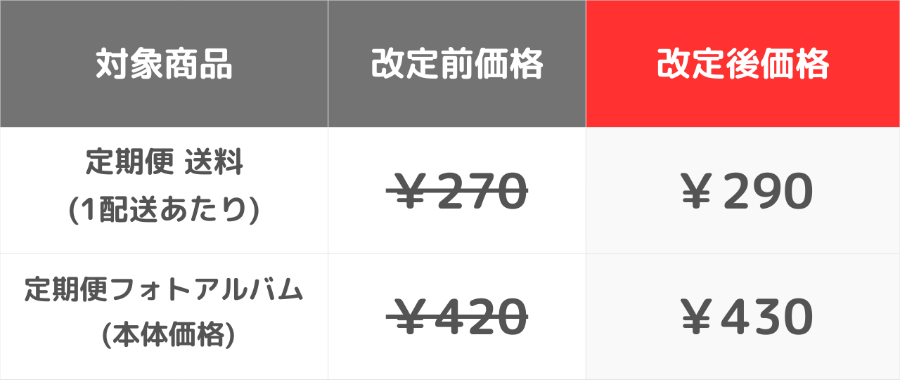※定期便カレンダー本体料金は¥259(税込 ¥285)のまま据え置きとなります。